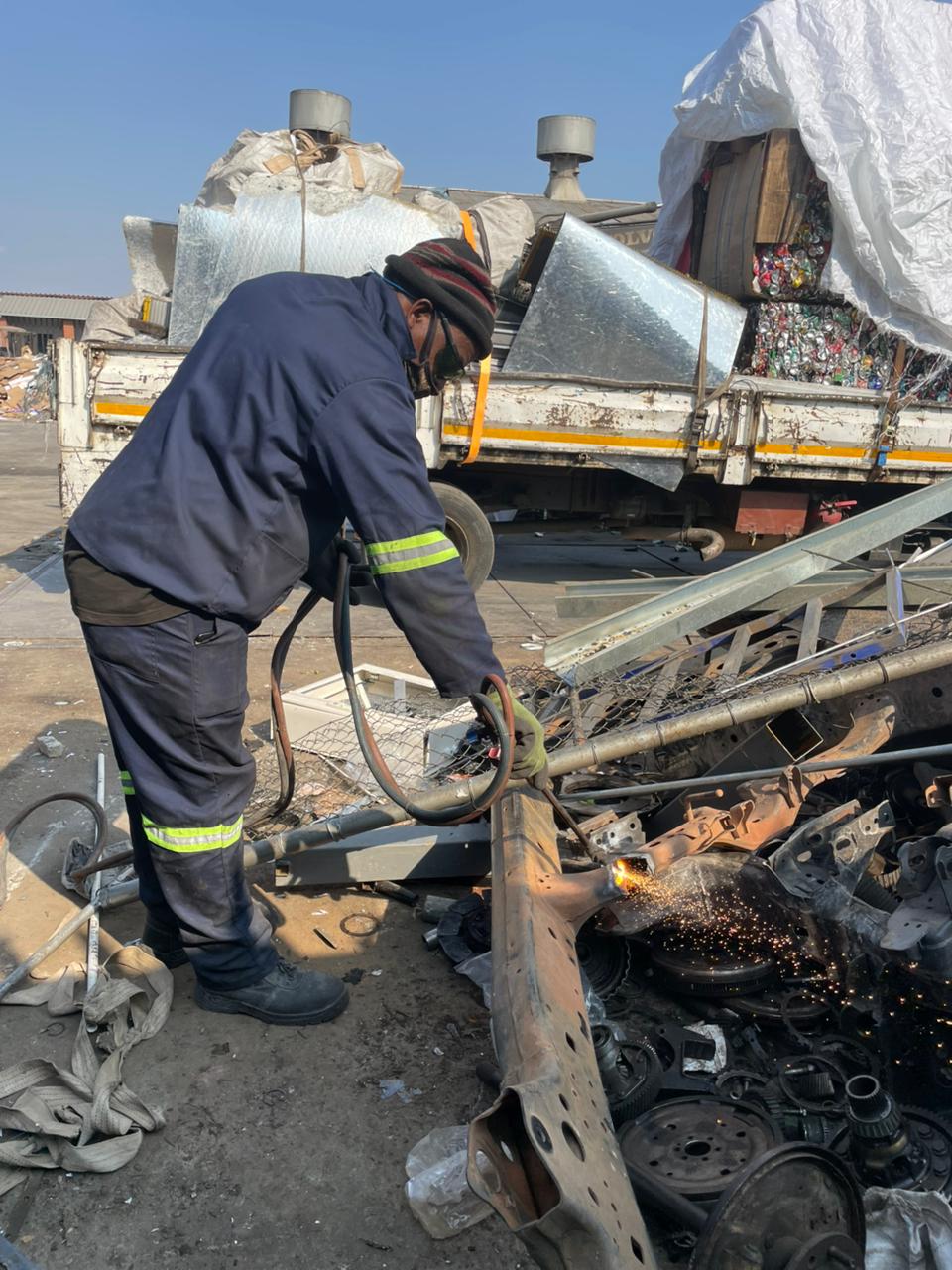 Scrap metal dealer Kempton Park Our Gallery Sorting & Cleaning Aluminum Bailing Plastic Sorting Steel Forklift Excavator Sorting & Cleaning Motors Scales & Receipt systems Truck Driver Weighbridge Company Boards Bailed Aluminum cans Sub Grade Steel Bailed K4